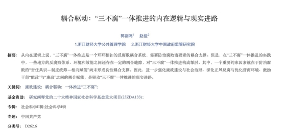 论文题目:耦合驱动:“三不腐”一体推进的内在逻辑与现实进路