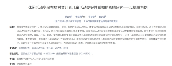 论文题目: 全休闲活动空间布局对育儿者儿童活动友好性感知的影响研究——以杭州为例