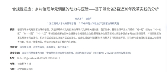 论文题目:合规性适应:乡村治理单元调整的动力与逻辑——基于湖北省Z县近30年改革实践的分析