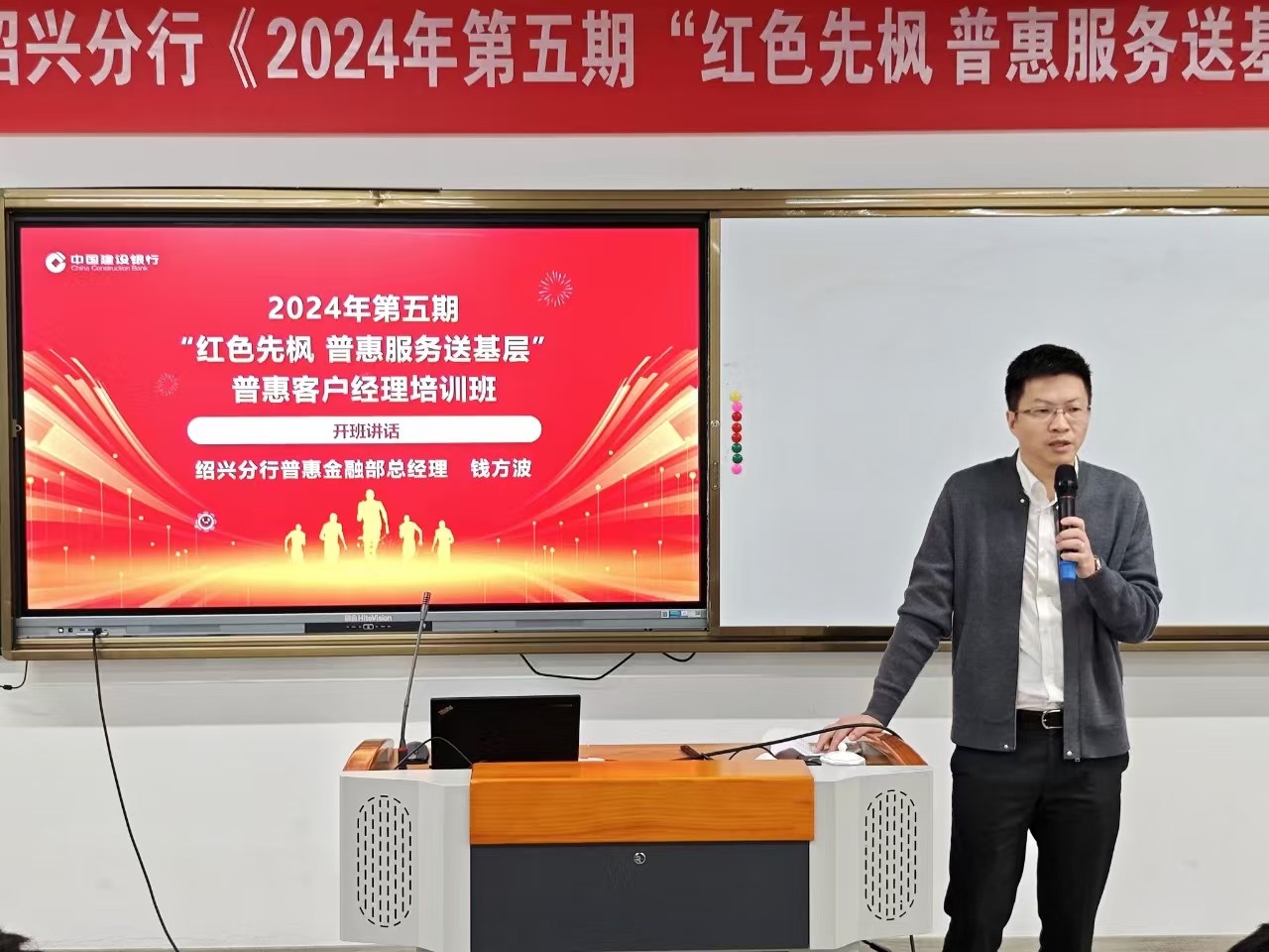 11月1日上午,中国建设银行绍兴分行普惠金融部总经理钱方波进行了开班讲话,首先,他介绍了本次培训的举办背景与主要目的,以及现阶段分行的工作重点和工作方向;其次,他对学员提出了几点培训要求,要遵守培训纪律,积极参与培训各个环节,进而将所学内容有效转化为工作动力。
