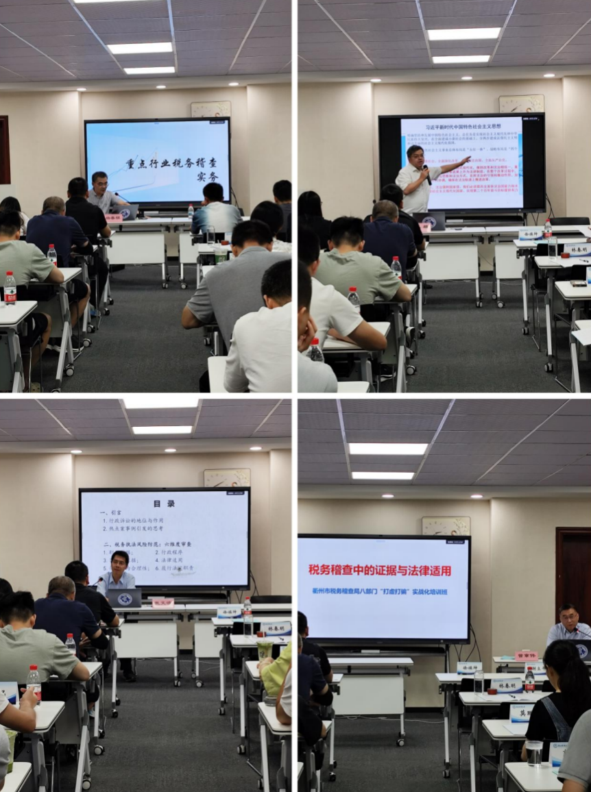 、浙江传媒学院、省高院等院校和实务部门的专家学者授课,内容涵盖了党性教育、财税改革、智慧税务、危机管理、稽查实务、法律风险防控等多个关键领域,实现了理论与实战的深度融合。通过一系列专题讲座和互动教学,学员们对当前税务工作的复杂性和挑战性有了更加深刻的理解,提升了专业技能和知识水平,还增强了职业素养和团队协作精神。