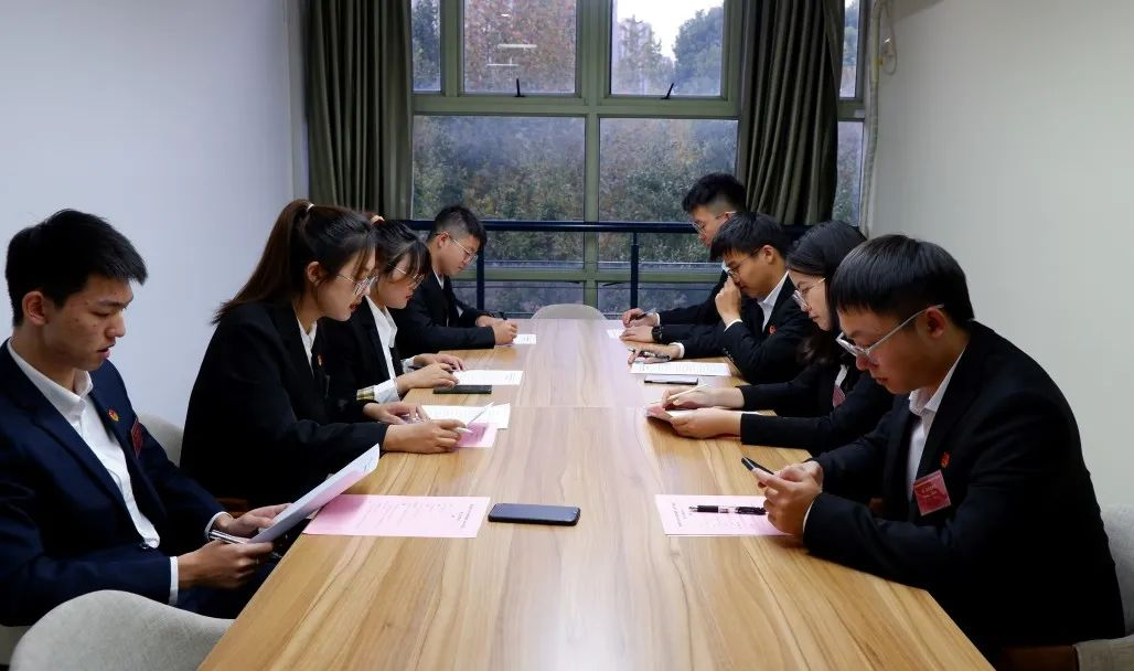 闭幕式后,全体委员于学院楼210参加共青团av大平台