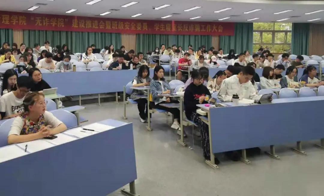 徐老师从诈骗的定义、种类入手,详细为大家讲解了诈骗的惯用手法以及防范措施,通过案例分析和政策解读让同学们树立了正确的防诈意识,为同学们敲响了安全的警钟。会议要求,班级安全委员和宿舍长要行动起来,把会议精神传达到每一位同学,引导同学们树立正确的消费观,促使全体同学认识到位、行动到位,远离风险,远离诈骗。