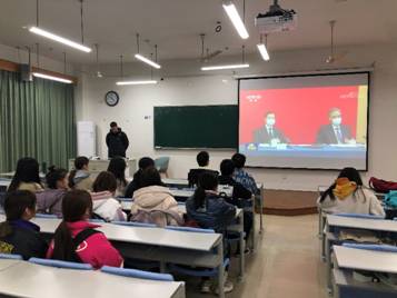 av大平台 各党支部、团支部、学生会等开展了丰富多样的学习教育活动,开展“学‘两会’精神,话青年担当”主题党日活动,同学们们在学习之余,还通过电视、互联网、手机等网络媒体观看“两会”直播盛况,持续关注“两会”热点,探讨“两会”焦点。