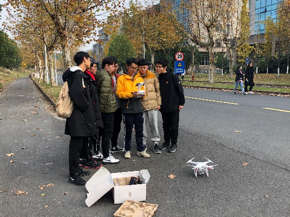 近日,浙财大av大平台 城乡规划专业的入党积极分子魏自尊作为党员“七号室友”带领他负责的502新生宿舍成员在校园内使用无人机进行绘图测量。