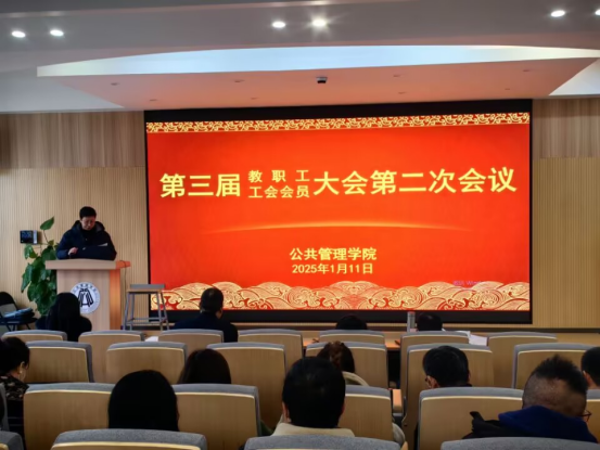 第三届教职工大会暨工会会员大会第二次会议在208会议室隆重举行,学院领导班子及全体教职工出席大会。大会由院党委副书记田聪主持,院党委书记林亚芳致开幕词。