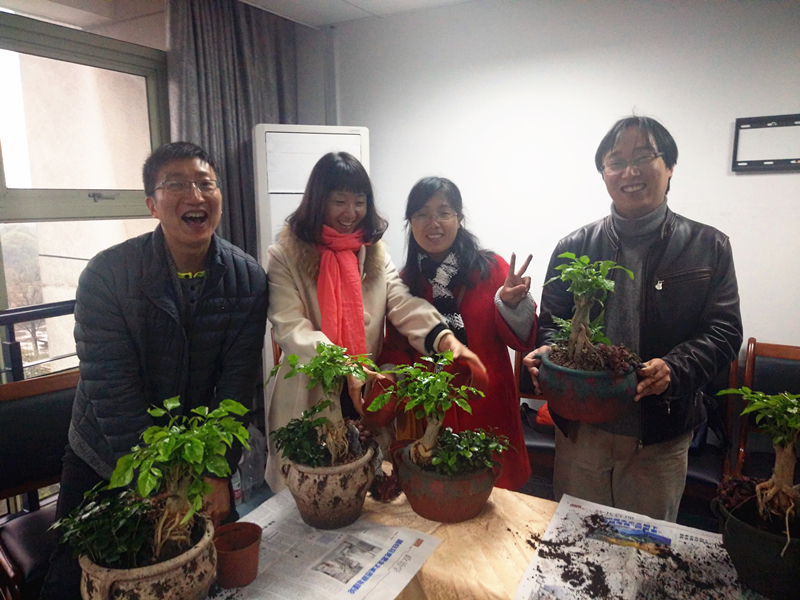 于3月8日在1号学院楼517C会议室开展盆景栽培活动,全体教职工都踊跃参与。