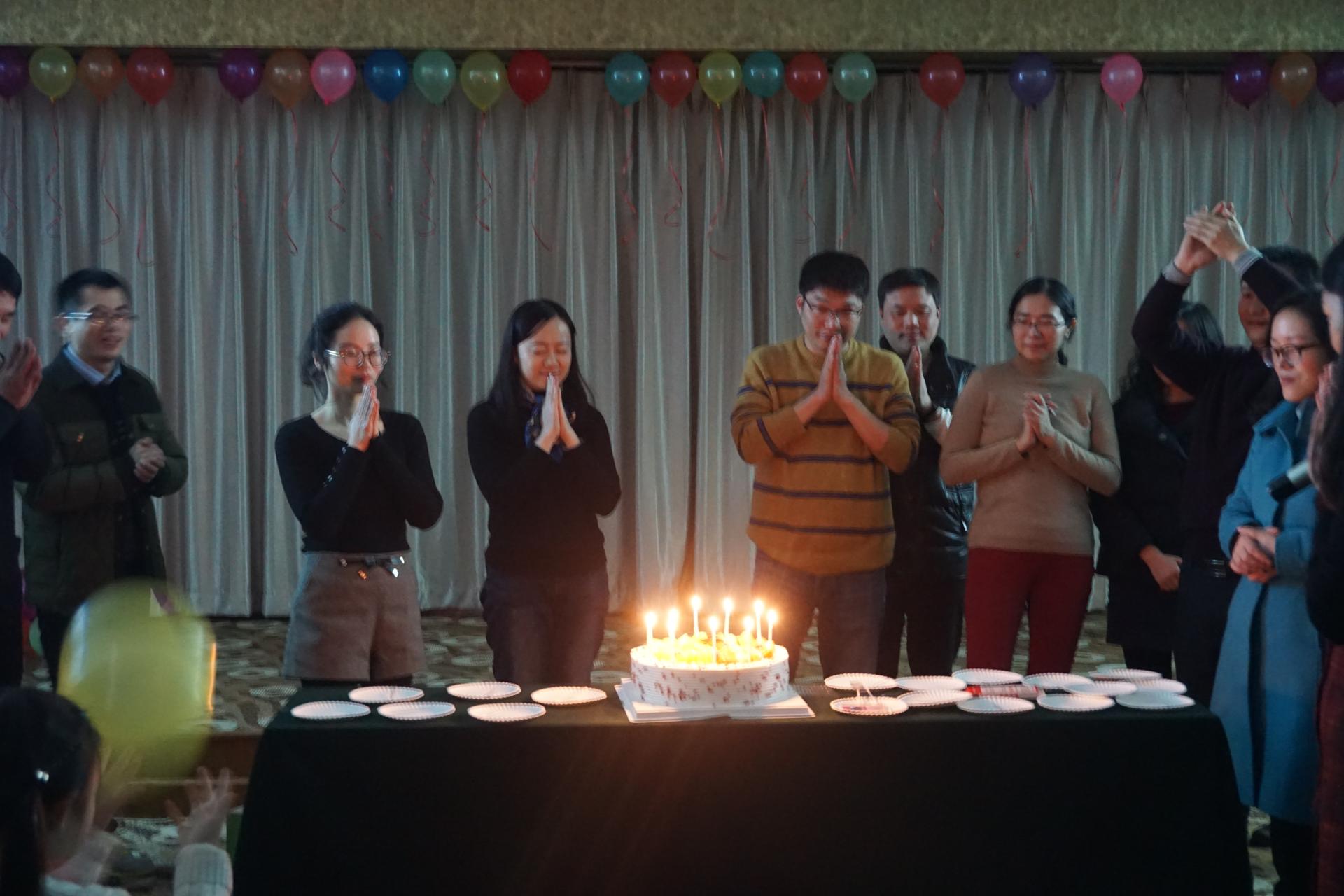 联欢会后程,工会特地精心准备,为1-3月份生日的老师们举办了温馨的“集体生日会”,其乐融融,老师们品尝着甜蜜的蛋糕,在全体教职工齐声合唱《相亲相爱一家人》,联欢会拉下了帷幕。