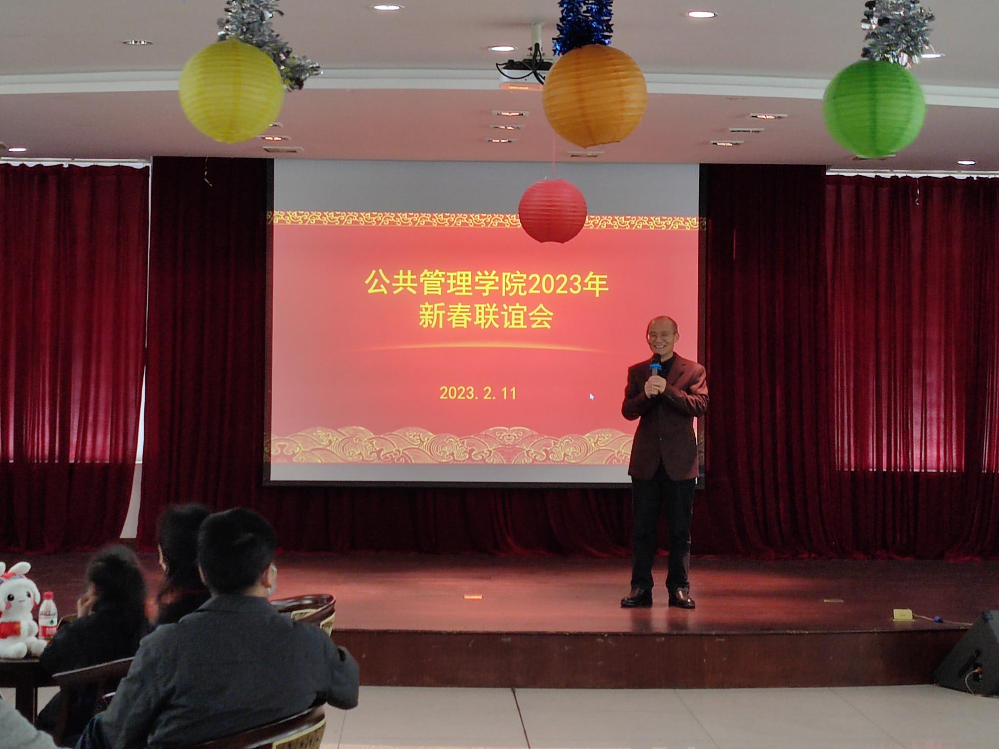 为丰富教职工的文化生活,打造“幸福公管”,2月11日下午在文化中心311举办新春联欢会。学院领导班子成员和全体教职工欢聚一堂,共同迎接大展宏图的可爱兔年,现场洋溢着幸福、欢乐的气氛。