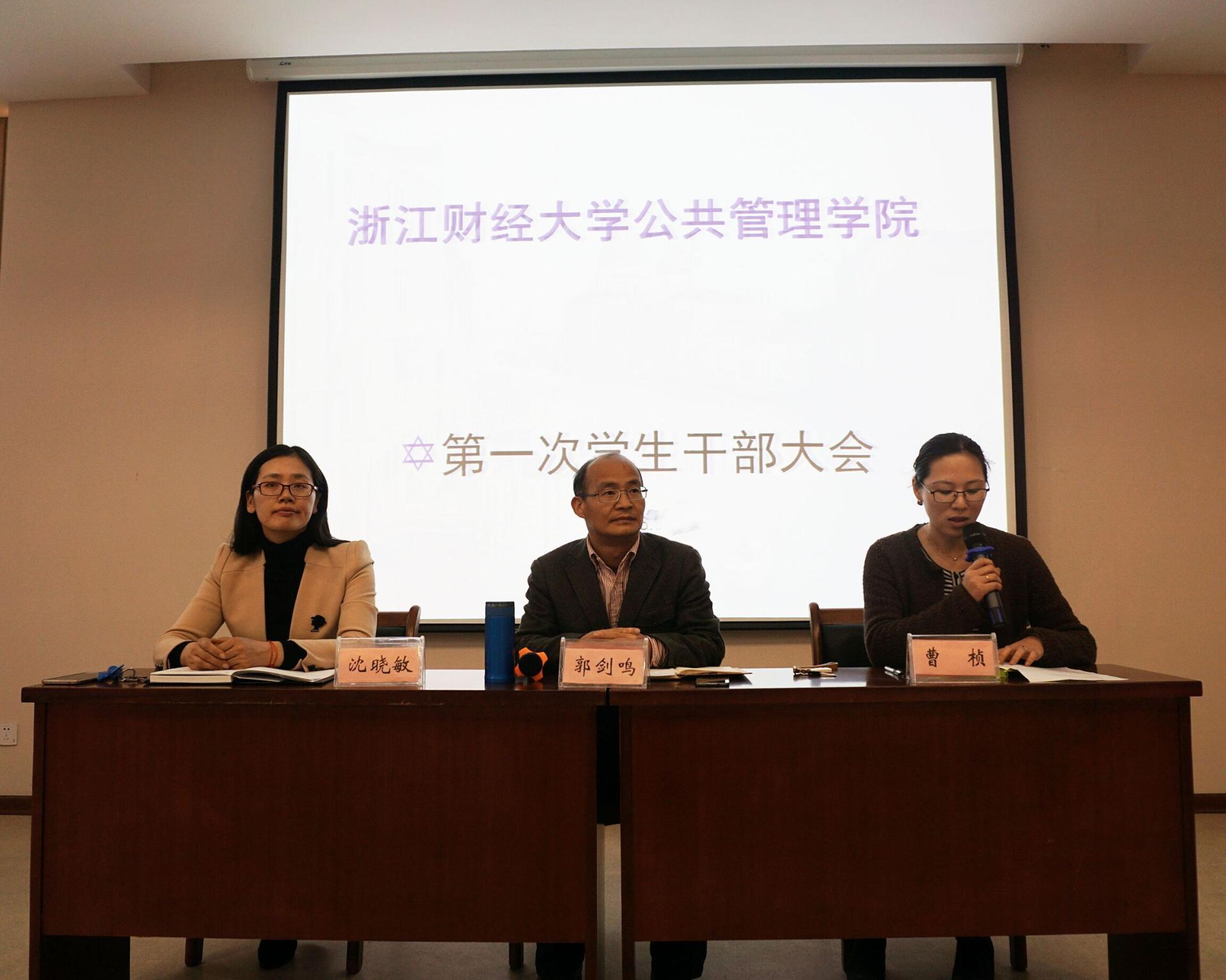 拥有强大的师资力量,学科科研发展硕果累累,高水平成果总量位居全校第三。对于如何更好地经营学院,郭院长提出“人才兴院、学科强院”战略,为人才营造良好学院环境,加强师生之间的联系。紧接着由党委书记沈晓敏发表讲话。正值三八妇女节,沈晓敏书记首先祝在场的女生节日快乐,并对学生干部们提出了两个要求,第一,瞄准高位,追求卓越;第二,用好青春,争创第一。对于学生干部的领头羊作用,沈晓敏书记希望各学生干部能够充分发挥带领作用,不怕吃苦,不负青春。