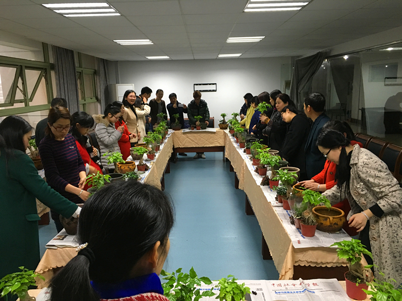 于3月8日在1号学院楼517C会议室开展盆景栽培活动,全体教职工都踊跃参与。