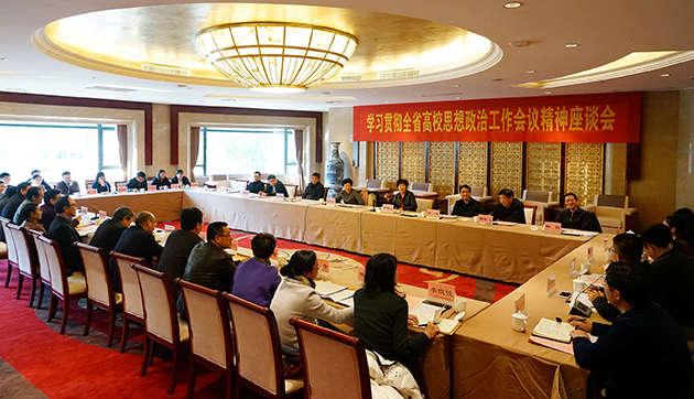 葛慧君对进一步深入深化学习贯彻省高校思想政治工作会议精神,提出了重要意见:一是带着感情抓学习贯彻,解决好一个“真”字。;二是带着问题抓学习贯彻,解决好一个“改”字。;三是带着责任抓学习贯彻,解决好一个“实”字。她强调高校思政工作怎么重视都不为过,组织上交给政治责任,就要拿出一份政治担当,拿出一些实实在在的措施,才会让思政工作走上一个新的台阶。 何杏仁在座谈会上强调要加强三个方面工作:一是要抓深。在学习、工作和研究上要深入;二是要抓细。坚持问题导向,把问题理清楚,找出解决问题的办法;三是要抓长。要有足够的耐心长久抓、持续抓。