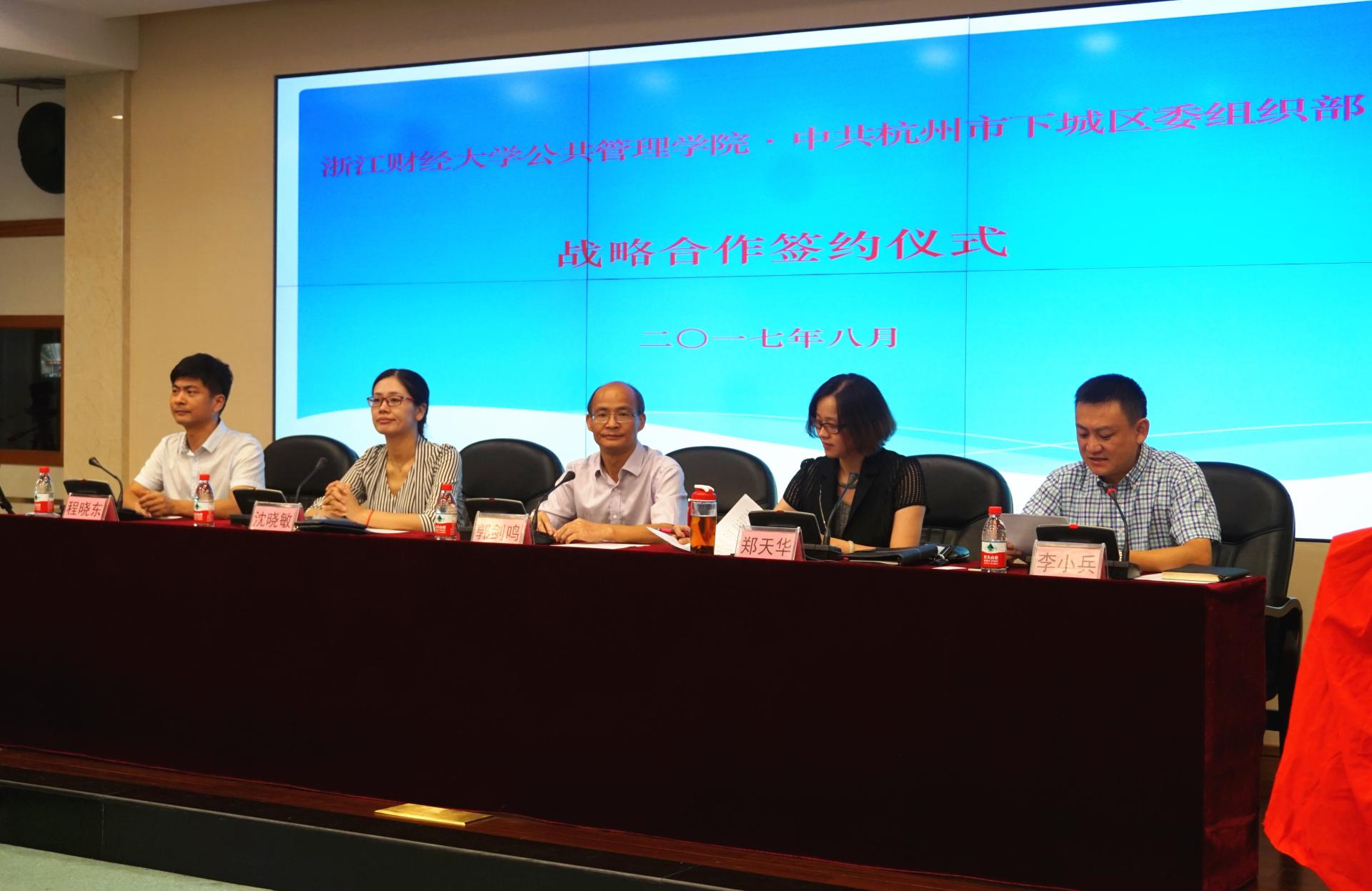 8月15日,学院与中共下城区委组织部战略合作协议签署仪式在下城区行政中心举行。下城区委组织部副部长、区委人才办主任郑天华,区委人才办副主任李小兵,院长郭剑鸣,院党委书记沈晓敏,院党委副书记程晓东,区政府办、区老干部局、区发改局、区经旅局、区人社局、区卫计局、区妇联、天水街道、武林街道、朝晖街道等单位有关负责人及av大平台
