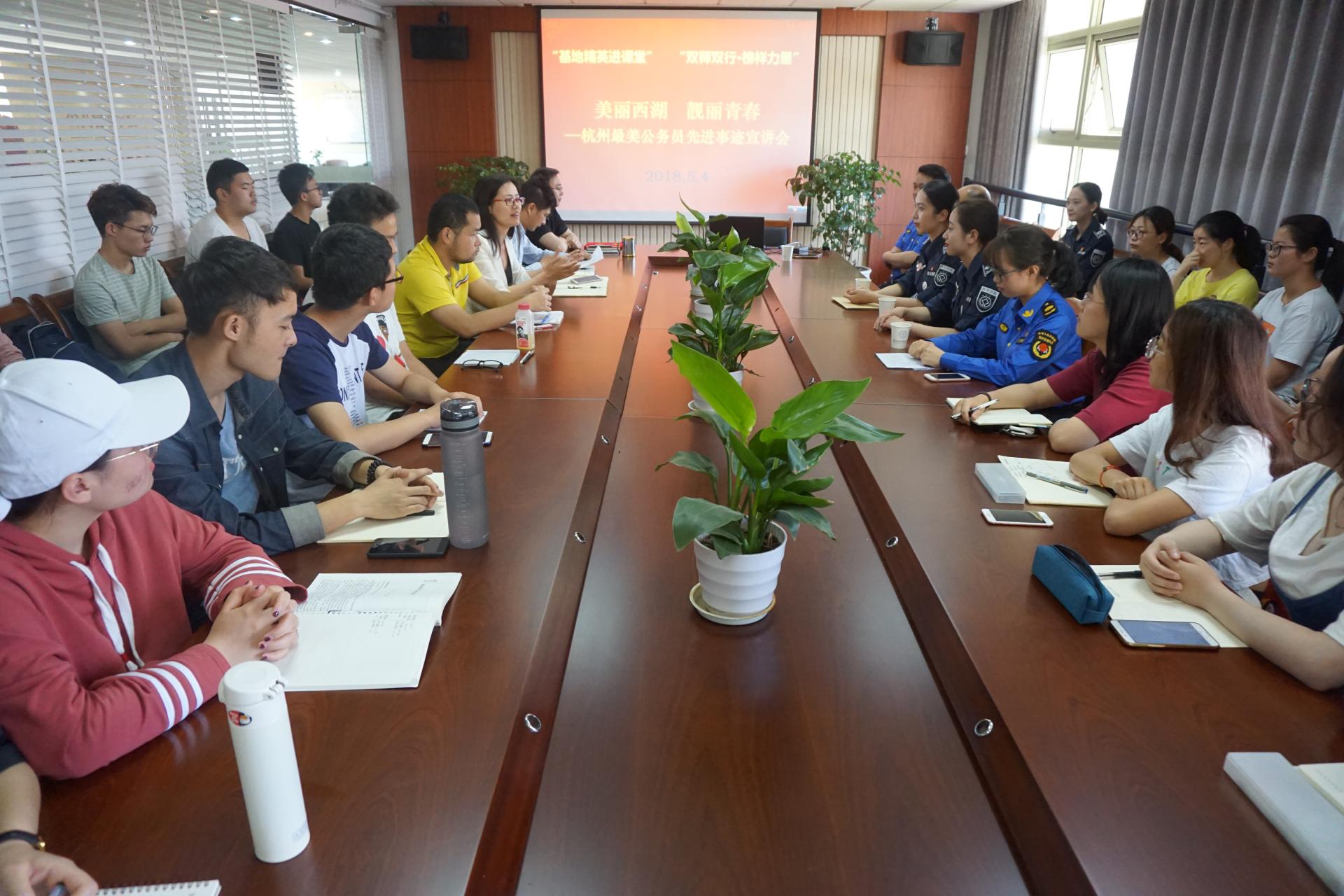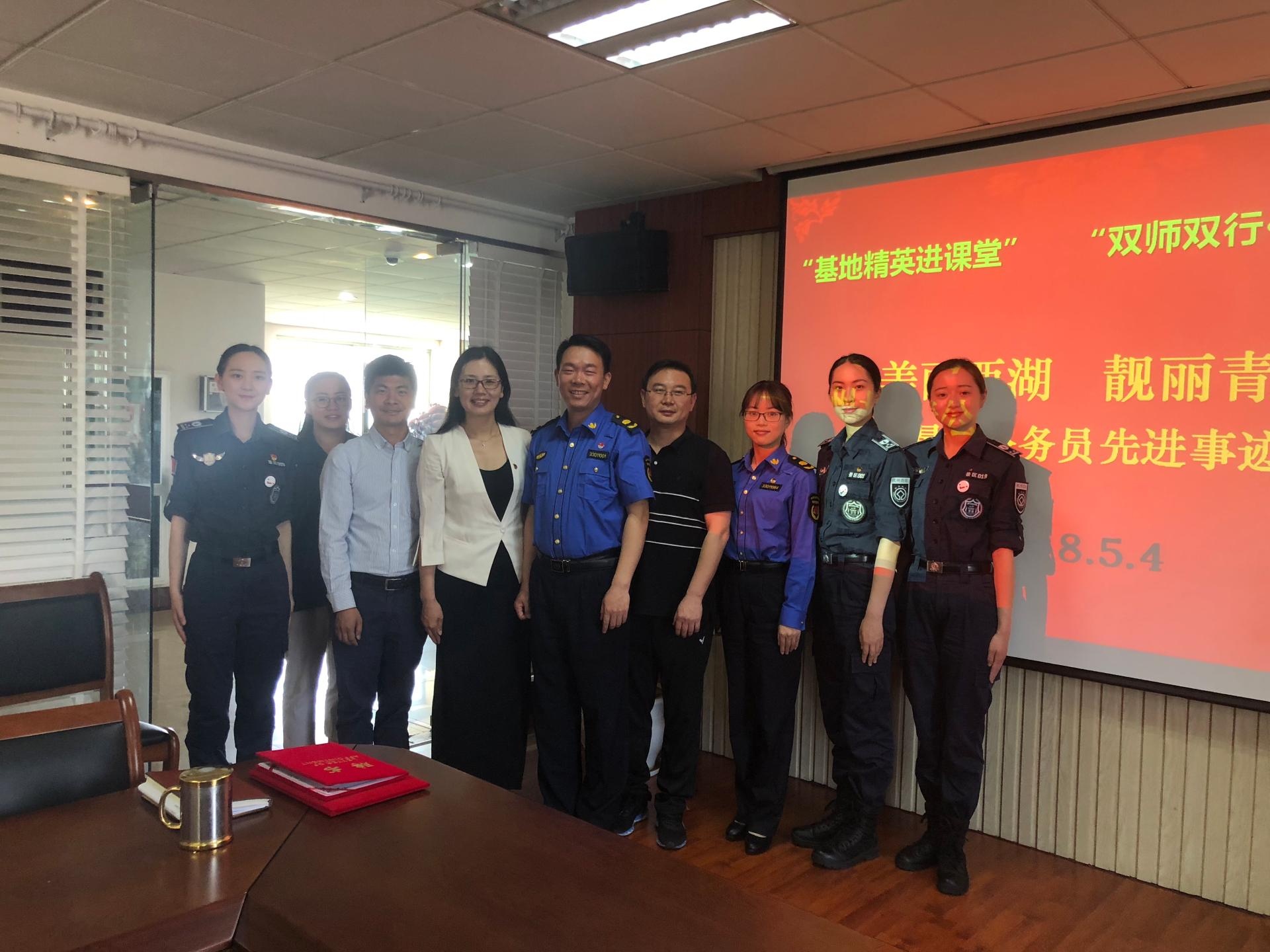 特地举行了“双师双行”榜样力量——“最美杭州人”事迹报告会,杭州西湖景区城市管理行政执法局冯刚局长及西湖女子巡逻队一行应邀分享感人事迹。学院院长郭剑鸣教授、党委书记沈晓敏、副书记程晓东,城市管理系主任杨雪锋教授及50余名青年学生代表现场聆听报告。