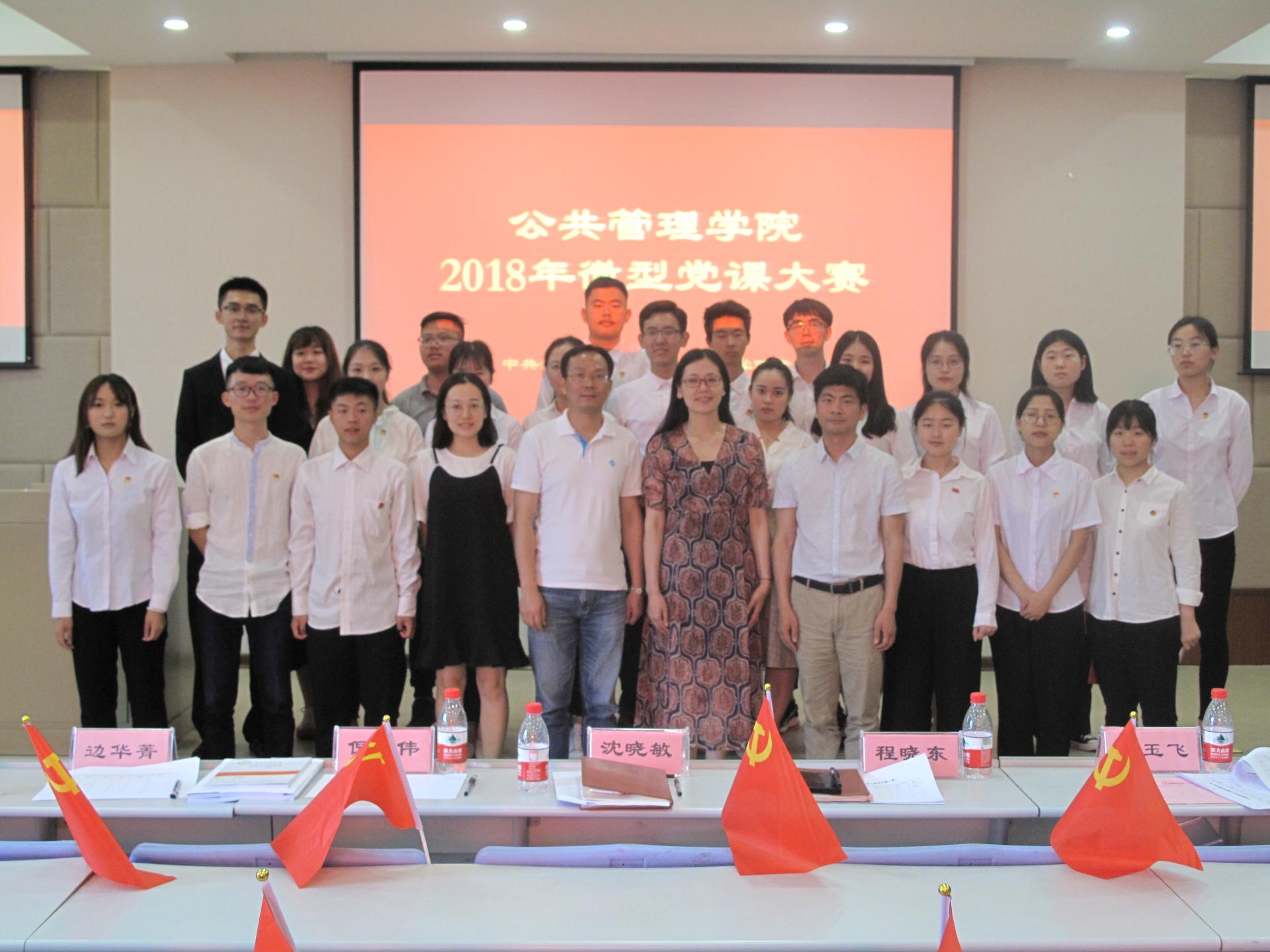5月15日下午,学院在1号学院楼208组织开展了以“弘扬红船精神,走好新时代的长征路”为主题的微型党课大赛。院党委书记沈晓敏,院党委副书记程晓东、教工第二党支部书记韦晓蓓老师、教工第五党支部书记倪建伟老师、研究生党支部书记郭玉飞老师老师、学生第三党支部书记边华菁老师出席本次比赛并担任评委。