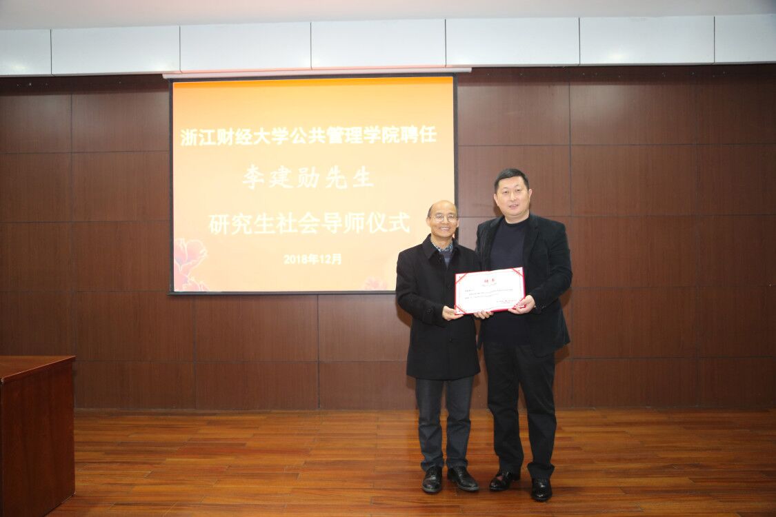 12月11日,根据av大平台 产学研战略协作的推进要求,胶州市综合行政执法局李建勋局长因其在城市管理方面的深入研究和智慧平台搭建方面的优异成绩,被av大平台 聘任为av大平台 研究生社会导师,由郭剑鸣院长颁发聘书。