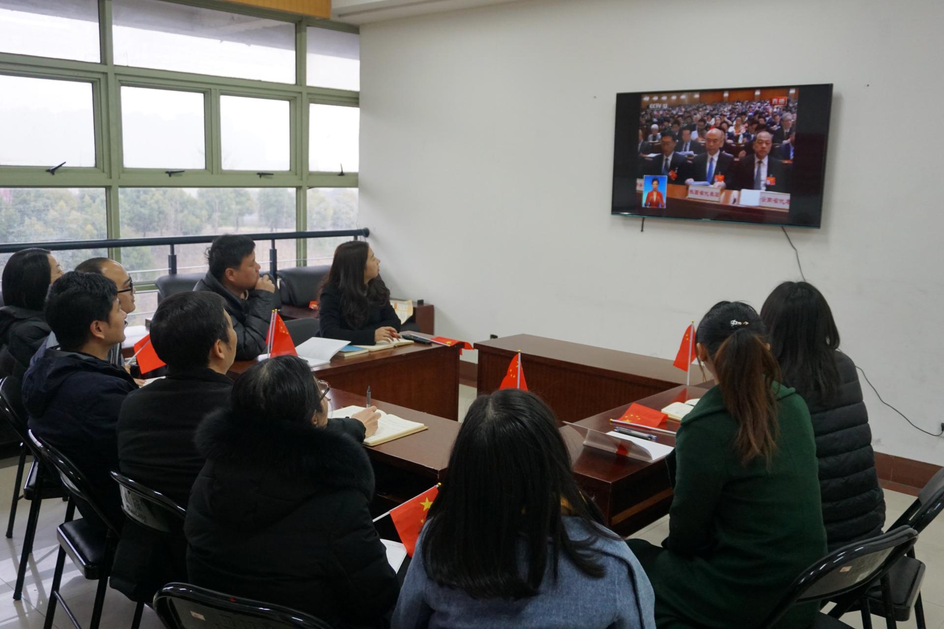 组织师生认真收看十三届全国人大二次会议开幕会,100余名师生参加了集中观看。