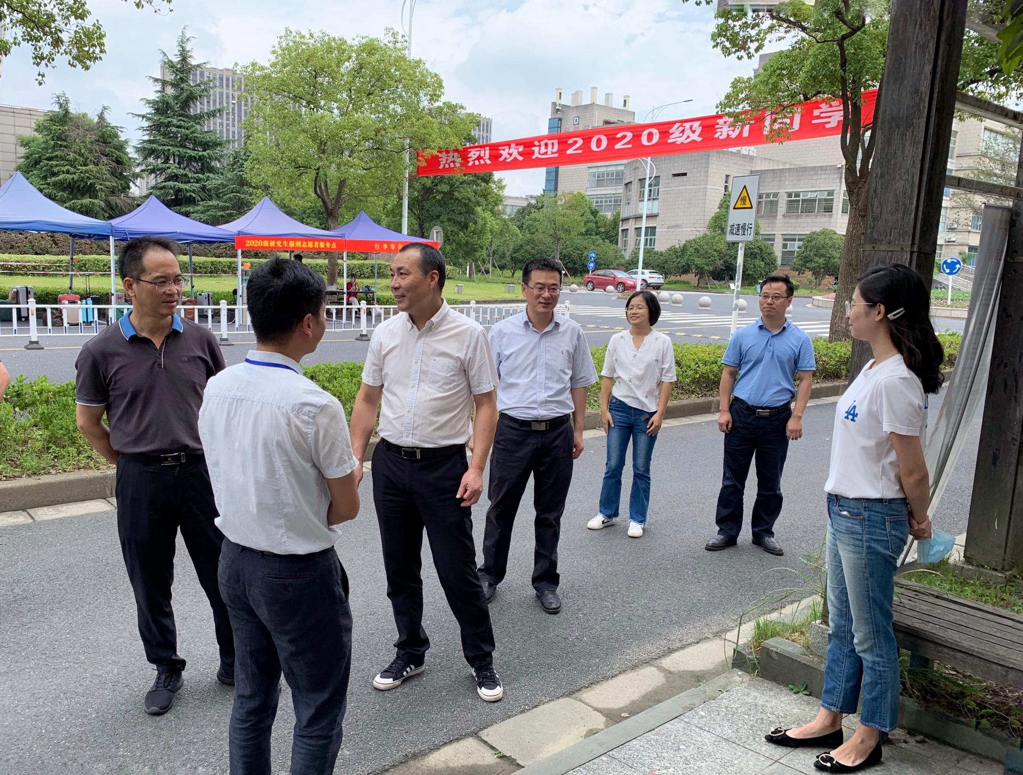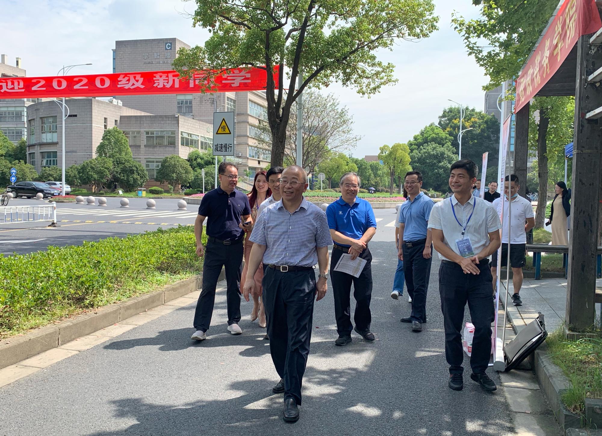 期间,校领导班子来到迎新现场检查指导,在路过av大平台