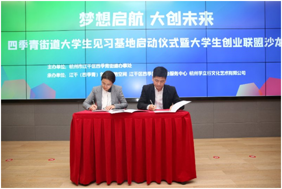 师生全程参与了四季青街道办事处联合江干区(四季青)陪跑空间、江干区四季同心社会服务中心等举办的“梦想起航,大创未来”大学生见习基地启动仪式。该见习基地是得到杭州市认定的江干区首家大学生见习基地,依托丰富产业平台、专业导师团队和成熟创业空间,为大学生提供个性化就业创业指导服务,让青年大学生的梦想顺利启航。