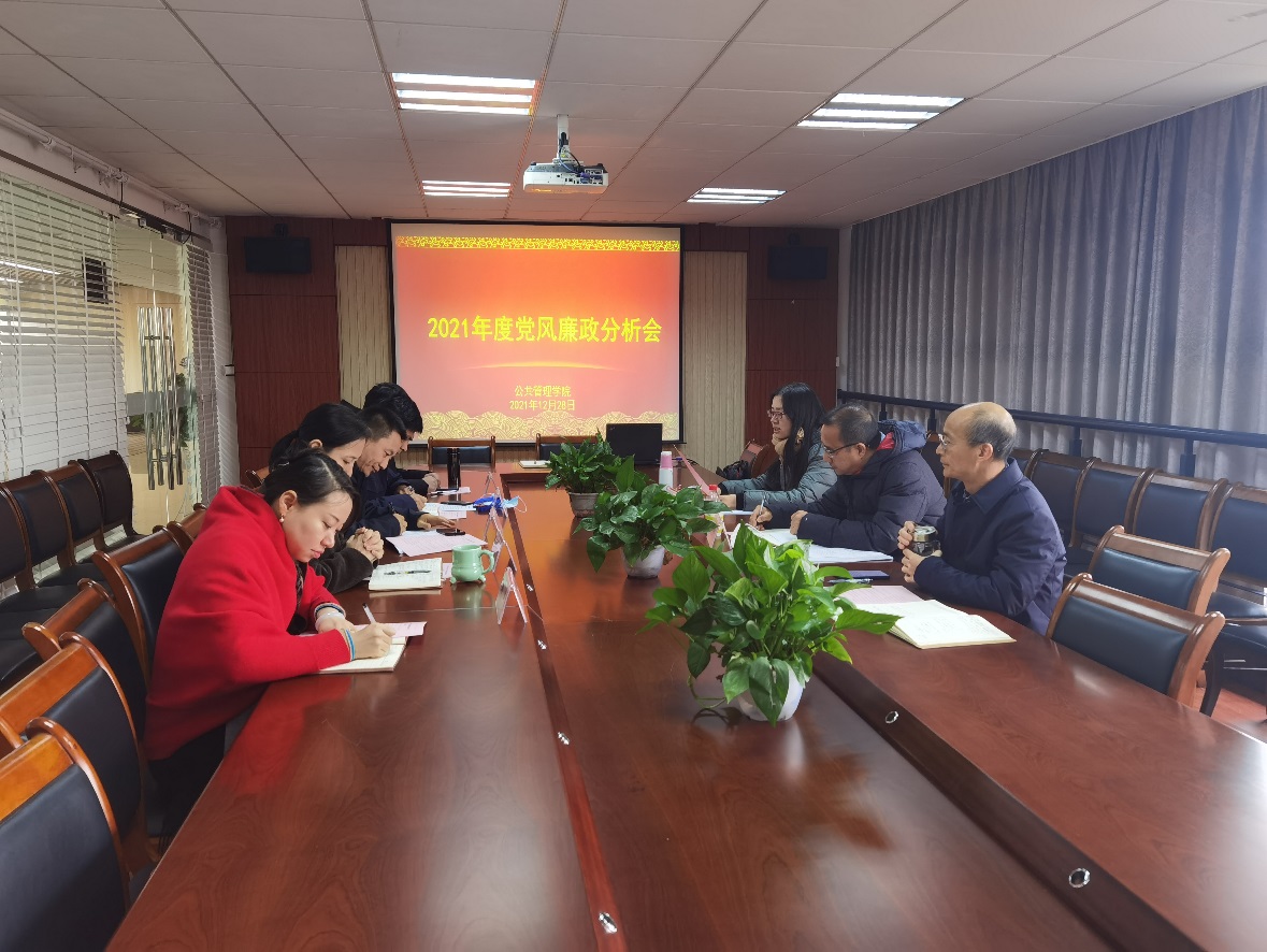 在1-517会议室召开了2021年度学院领导班子党风廉政建设分析会。校纪委委员、学报编辑部主任龚刚敏,学院领导班子全体成员、纪委委员参加了会议。会议由学院党委书记沈晓敏主持。