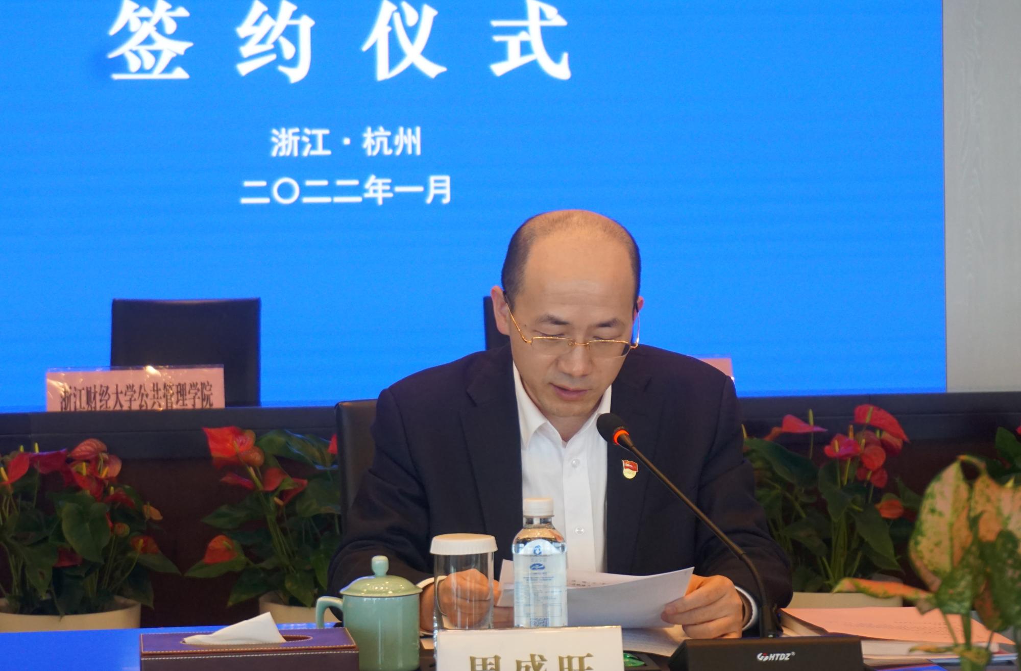 与中国建设银行浙江省分行人力资源部举行全面合作备忘录签约仪式。建行省分行人力资源部(党委组织部)总经理、部长周盛旺,副总经理、副部长徐晓元,省分行机构业务部副总经理郭秋杭,学院院长郭剑鸣、副院长裴志军,院党委副书记程晓东等出席签约仪式。