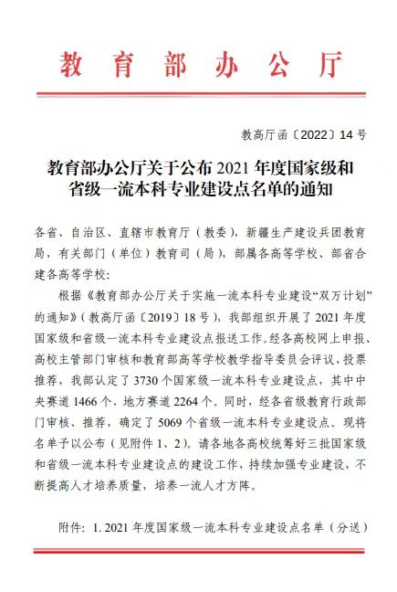 近日,教育部办公厅发布了《关于公布2021年度国家级和省级一流本科专业建设点名单的通知》,av大平台