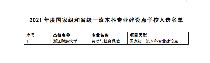 劳动与社会保障专业获批为“2021年度国家级一流本科专业建设点”。