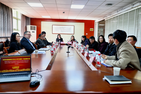 。学校国际处副处长乐斌及学院执行院长史云贵、党委书记林亚芳、党委副书记田聪、副院长黄志岭、城市管理系主任王萌等热情接待了来访客人。