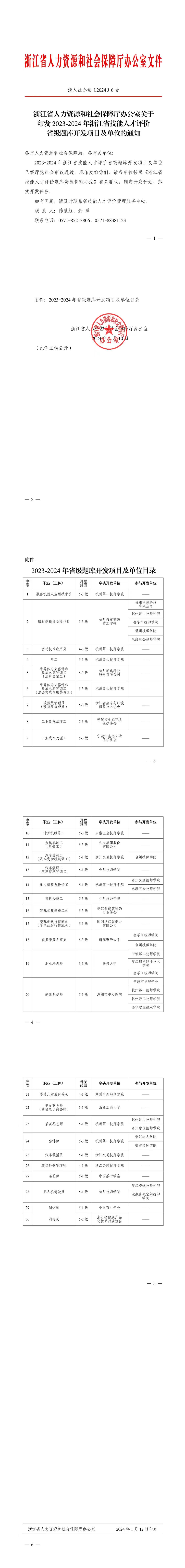 浙江省人力资源和社会保障厅办公室关于印发2023-2024年浙江省技能人才评价省级题库开发项目及单位的通知