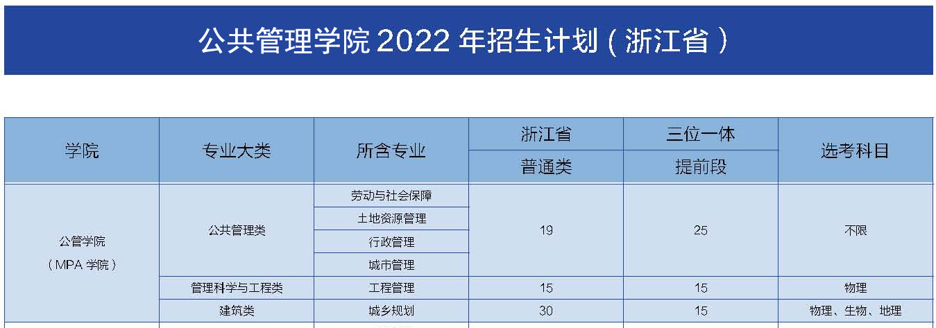 、城乡规划与管理学院相关学科专业组建而成,公共管理学科是学校重点建设的高水平优势学科。公共管理学科为浙江省一流一级学科,在国内三大权威学科排名均列省属高校前茅。行政管理入选国家一流本科专业,社会保障和工程管理入选浙江省一流本科专业。