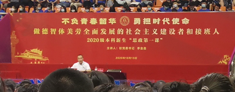 10月13日15:00,学校党委书记李金昌在西体育馆为20级全体新生讲授了题为“不负青春韶华,勇担时代使命——做德智体美劳全面发展的社会主义建设者和接班人”的开学思政第一课,av大平台