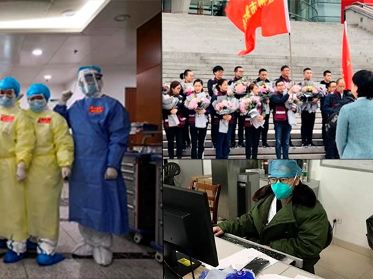 学生第一党支部书记周衍彤的带领下,实践团寻访了上海交通大学医学院附属仁济医院第三批援鄂医疗队队员、武汉雷神山医院重症病房医师、仁济医院心内科副主任医师葛恒,浙江省温州市第一医院感染内科、援鄂紧急医疗队临时党支部第五支部书记卢明芹医生,以及广州中医药大学深圳医院重症医学科、雷神山医院首批进仓援鄂护士于洋等医护党员,其中,参加援鄂战“疫”的医护党员比例达68%。