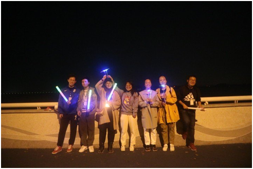 十一月的钱塘江畔,秋风瑟瑟,但是现场工作人员的热情温暖了同学们的心田。当晚八点准,活动负责人给同学们发放荧光手环,戴上手环的同学们心情激动。随着指令发出,参与者们戴着荧光手环一起出发,荧光点缀的钱塘江汇聚成了迷人的星海。全程设置了3个拍摄点,每个拍摄点都会有工作人员为同学们记录奔跑的美好时光。活动在九点顺利结束,同学们与工作人员在终点拍照留恋。归程途中,许多同学把五颜六色的竹蜻蜓放飞在璀璨的夜空,让这个意义非凡的夜晚变得更加有意义。