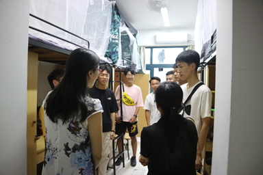 新生在校住宿条件和生活状况,31日下午3点,院党委书记沈晓敏,院党委副书记程晓东、副院长王直民、学办主任杨文超、团委书记余亮、辅导员边华菁,在四位新生班主任及班导的陪同下到达成蹊苑、桃李苑对新生寝室进行了实地走访,
