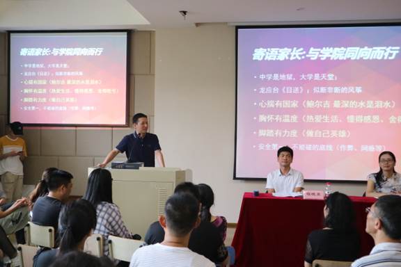各专业的发展情况以及未来的就业前景。最后程晓东书记介绍了学院学生工作的基本情况,特别强调了学生的安全问题。会后,新生家长们就自身疑惑积极地向班主任、辅导员请教,老师也热切地给予回复,一一解答了家长的困惑。