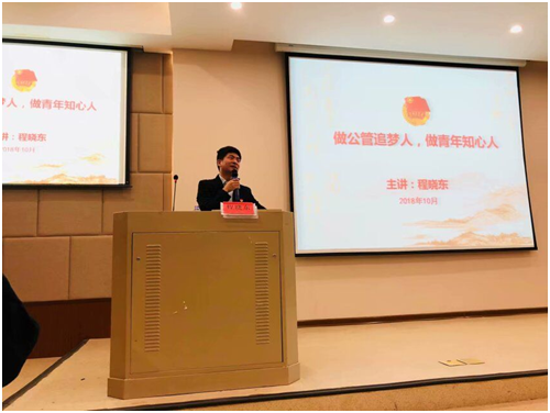 四、团员培训第一课:程晓东书记为团员们讲了题为“做公管追梦人,做青年知心人”的培训第一课,在课上程书记向团员们分享了自己的求学之路,并对所有团员提出了“团员青年,一定要带好头!”的号召。