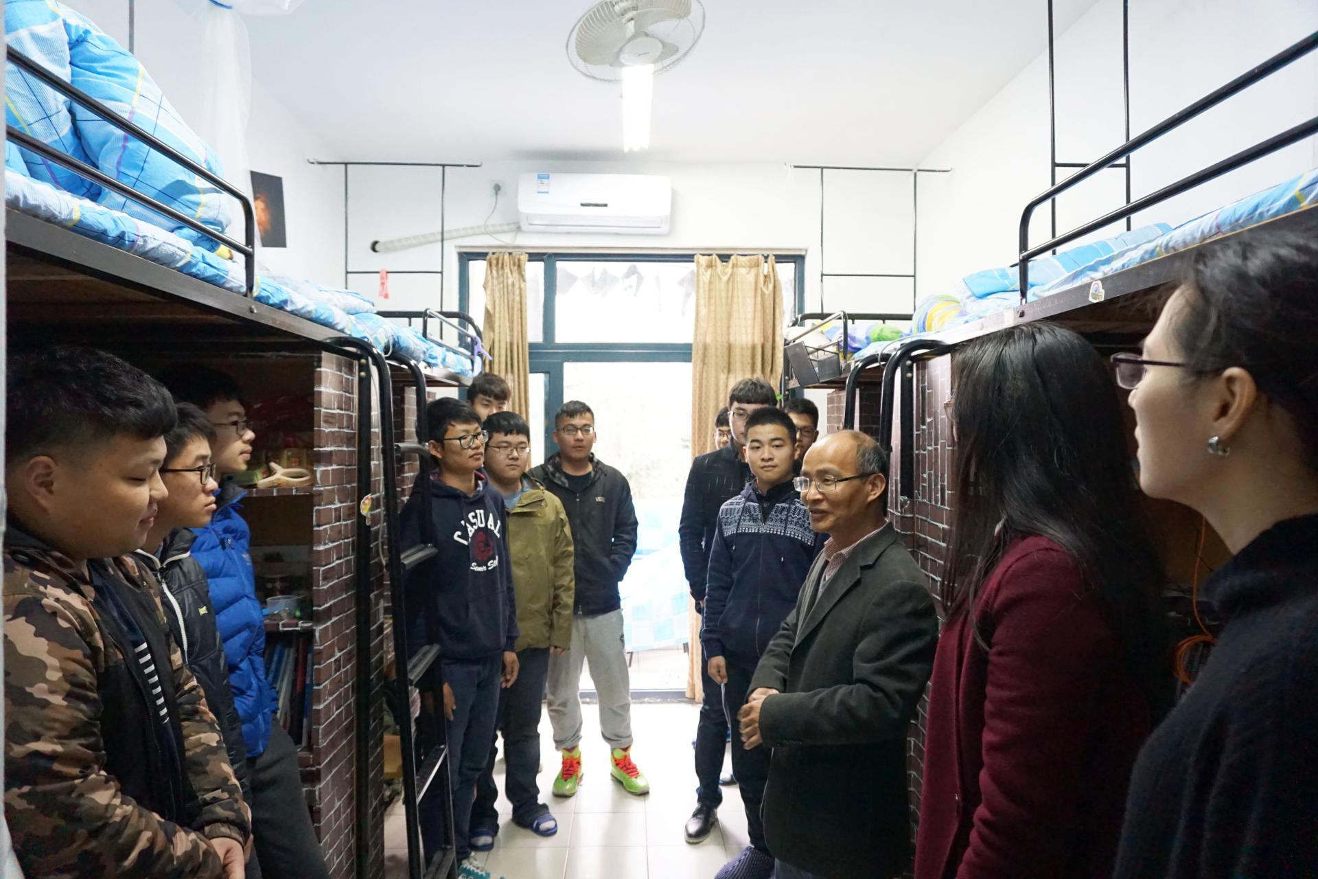 院长郭鸣剑、党委书记沈晓敏、党委副书记曹桢在辅导员和学生干部的陪同下来到学生寝室进行走访慰问。