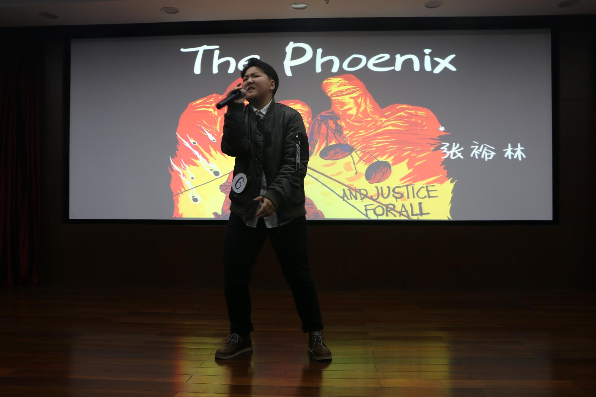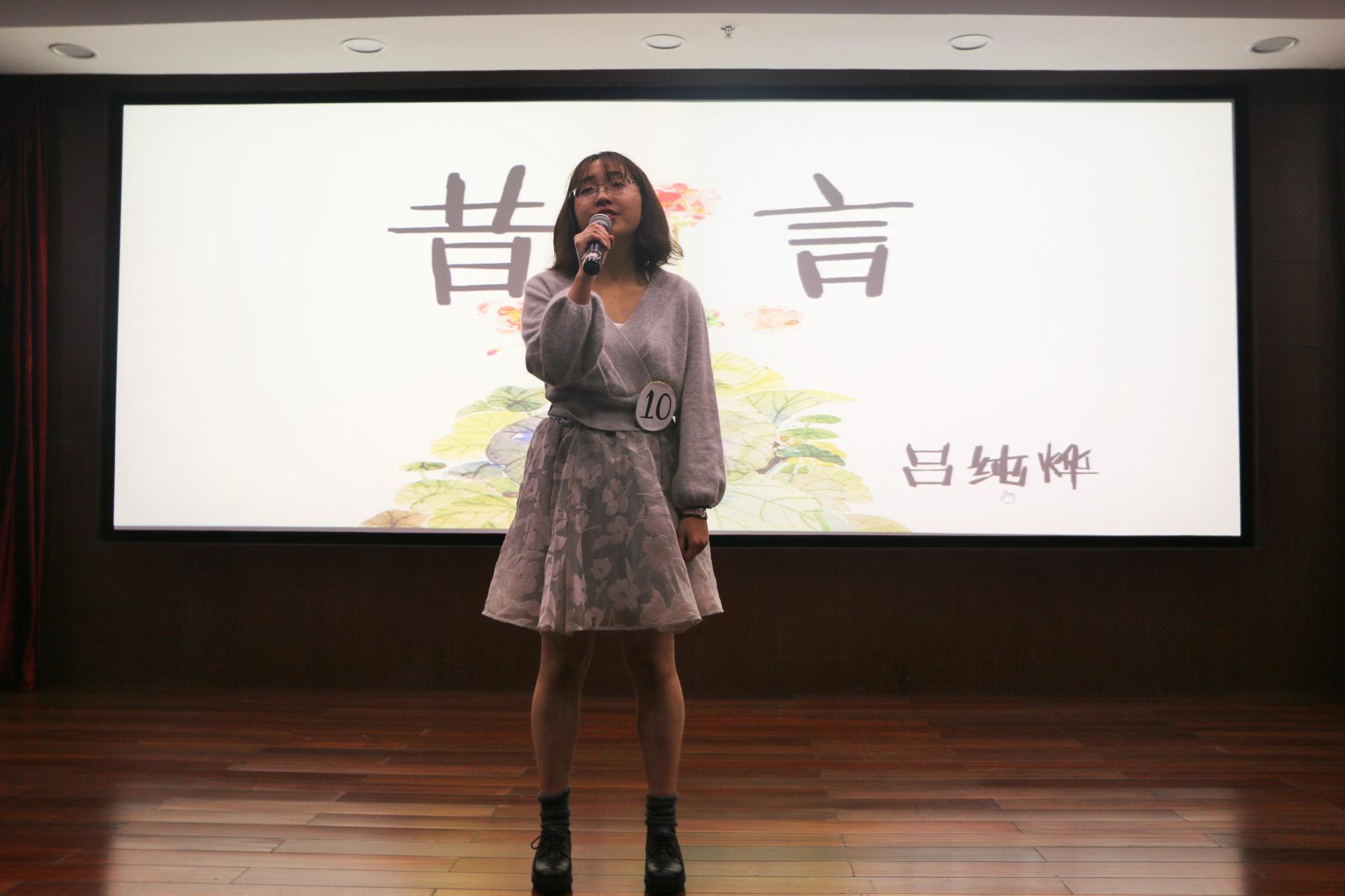 前十佳冠军赵明明为我们带来了歌曲《伤痕》,舒缓了紧张的比赛氛围,听歌识曲的游戏更是传递了快乐与激情。每位选手都迈出了勇敢的步伐,在舞台上充分展示了自己。吕纯烨同学更是凭借其出色的发挥获得了冠军,张裕林、杜逸文同学分获亚、季军。