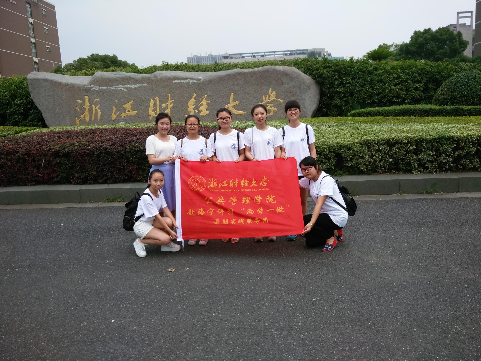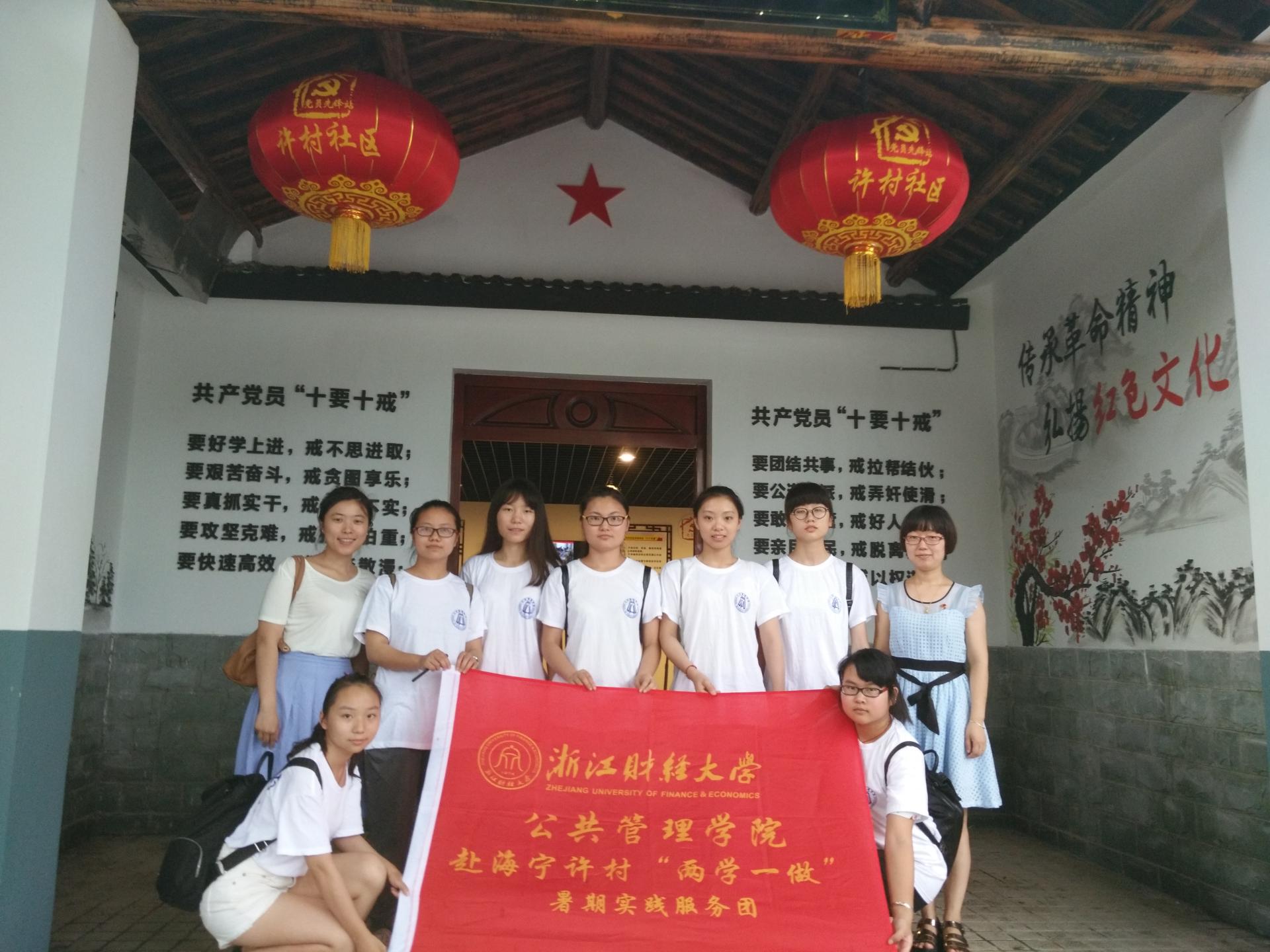 赴海宁许村“两学一做”暑期实践服务团来到许村社区参观学习。在社区党总支的带领下,8名师生参观了许村公园党建示范带。
